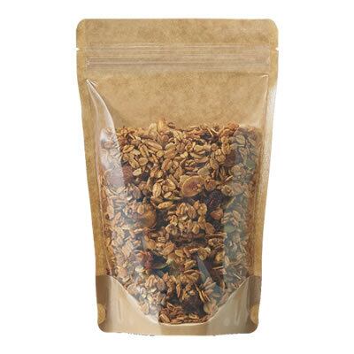 表面は透明で裏面にはクラフト紙を使用したチャック付スタンド袋です。